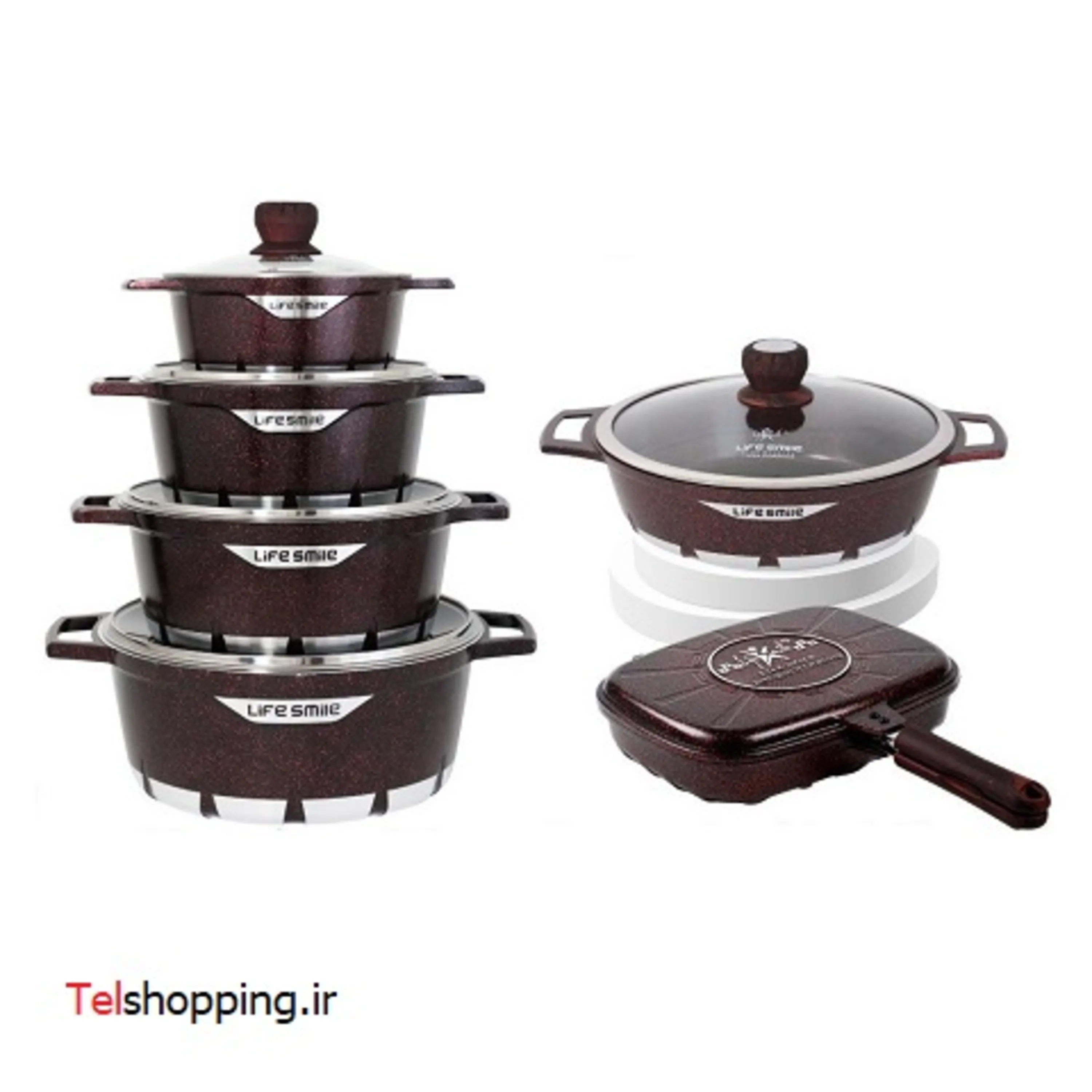 • شامل: 4 قابلمه 1 تابه معمولی 1 تابه دو طرفه