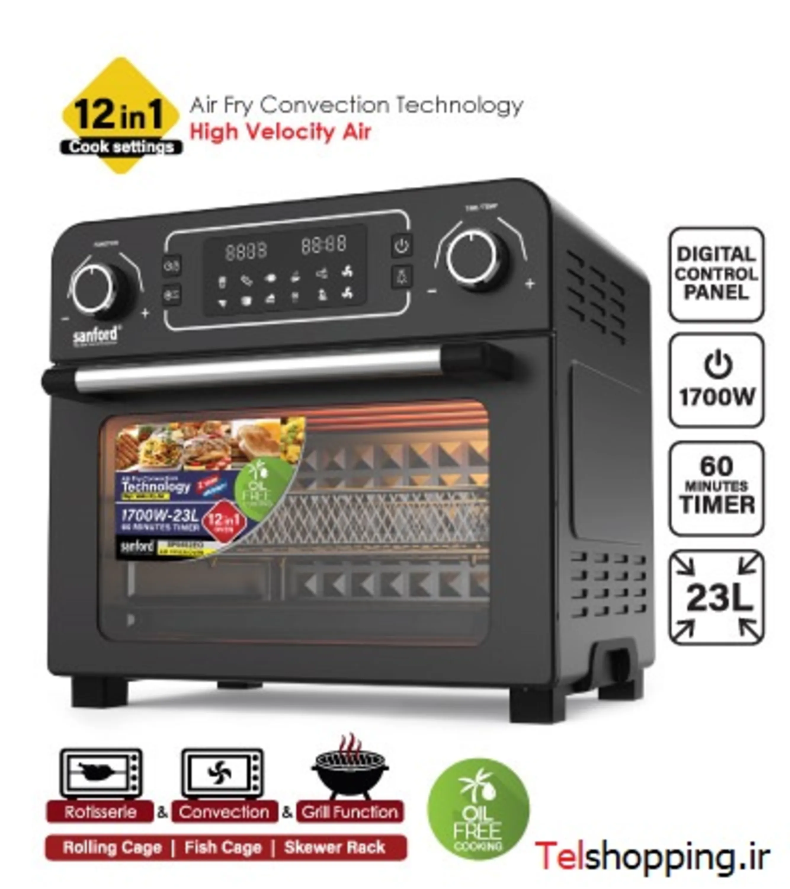 لوازم جانبی:سبد سرخ کن بادی، قفسه فر، سینی پخت، سینی خرده نان، قفسه واکشی، جوجه گردان، قفس غلتکی، سیخ سیخ، قفس ماهی، تانگ.