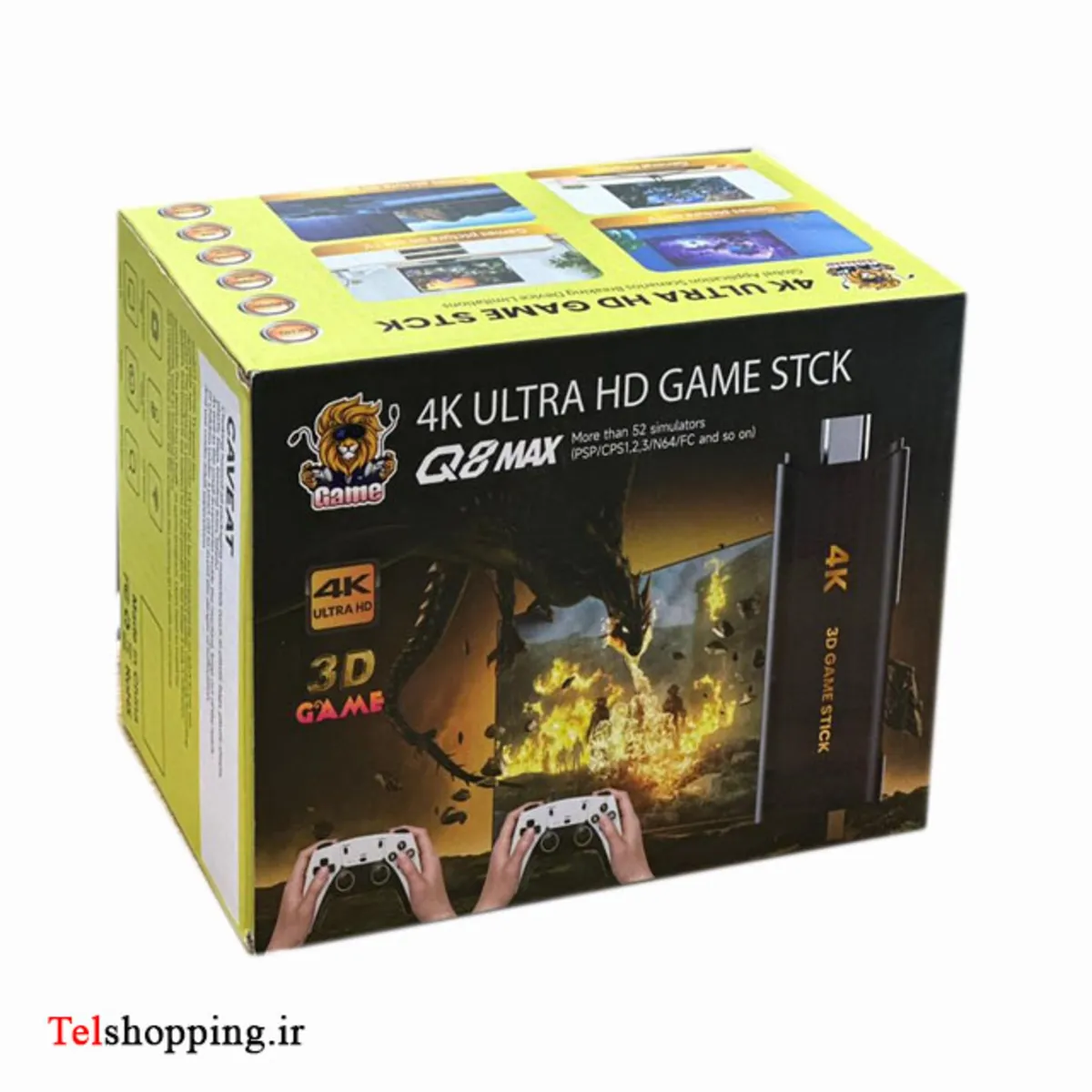 - این محصول با طراحی به شکل دانگل HDMI و قابلیت حمل آسان، به شما اجازه میدهد بدون نیاز به کنسولهای گرانقیمت، بازیهای قدیمی و کلاسیک از کنسولهایی مثل PSP، PS1، PS2، PS3، N64 و FC را تنها با اتصال به تلویزیون یا پروژکتور اجرا کنید. ویژگیهای اصلی استیک بازی 4K Q8 Max