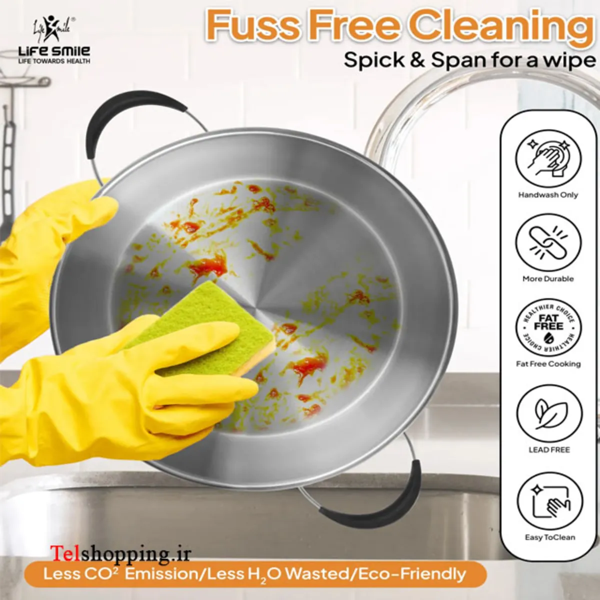 - تمیز کردن آسان، فقط با دست: تمیز کردن بعد از یک وعده غذایی خوشمزه هرگز آسانتر از این نبوده است. سرویس قابلمه لایف اسمایل برای نگهداری آسان طراحی شده است. برای حفظ درخشندگی و عملکرد، کافیست قطعات را با دست بشویید. سطح صاف و غیر متخلخل آن در برابر تجمع مواد غذایی مقاومت میکند و تمیز کردن را بسیار آسان میکند.