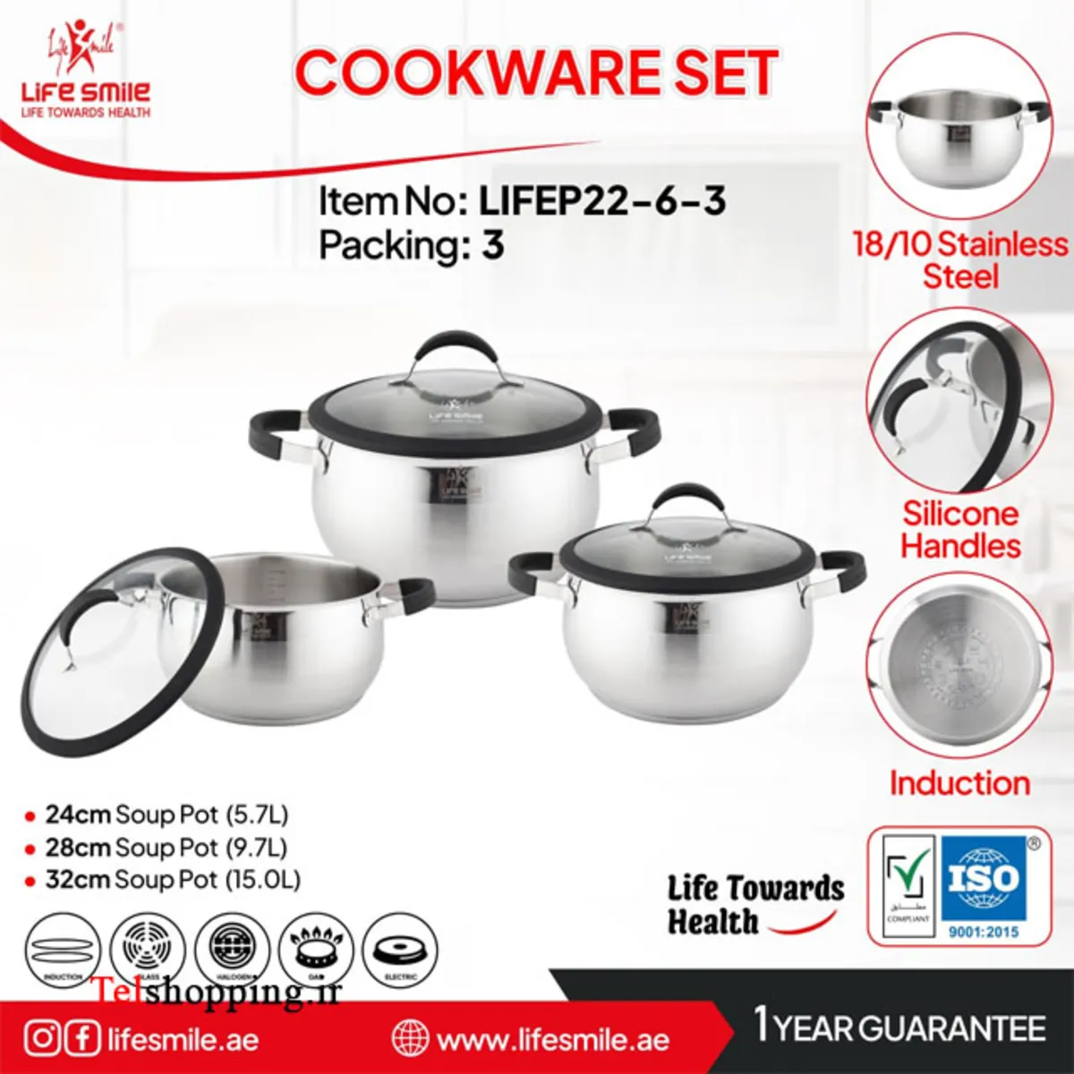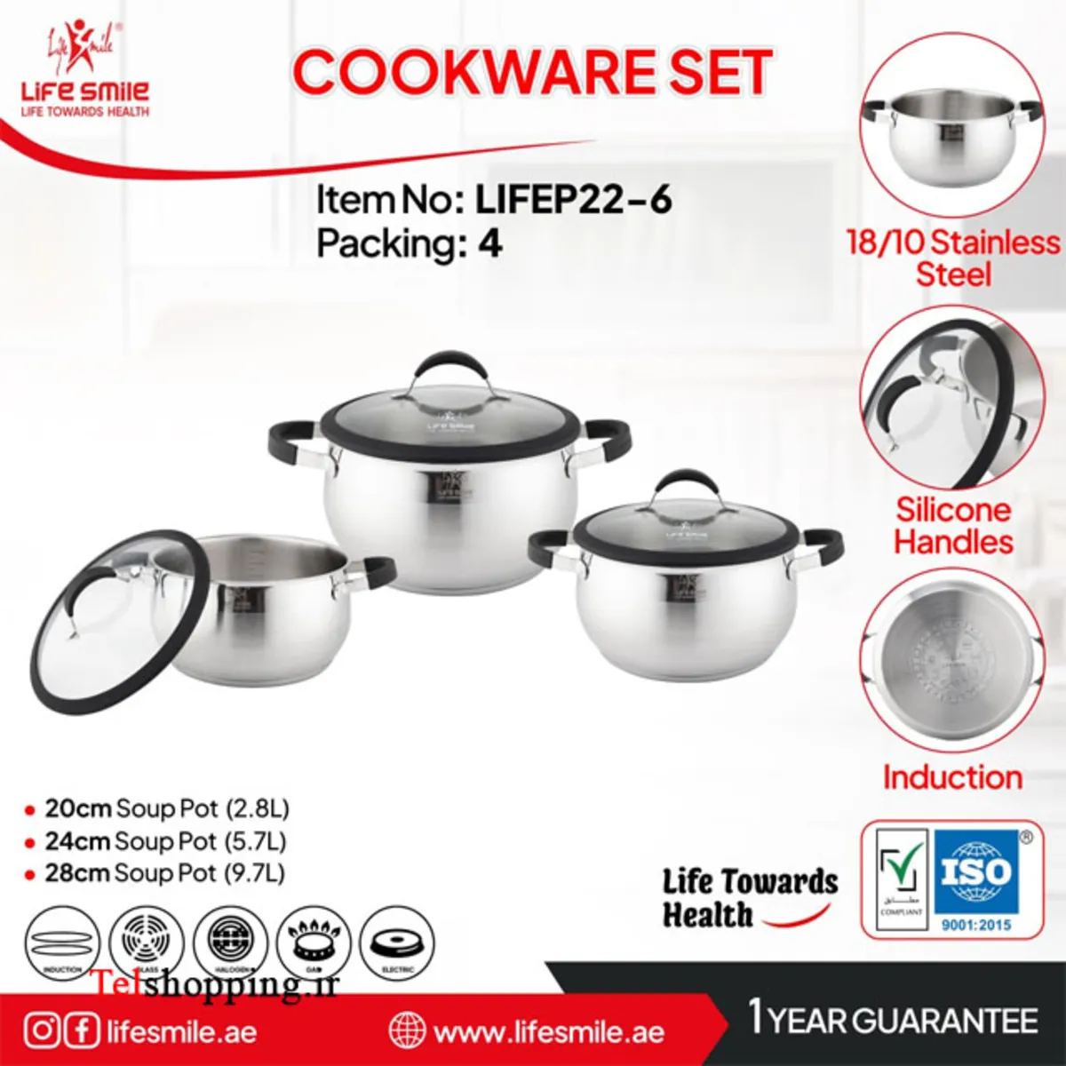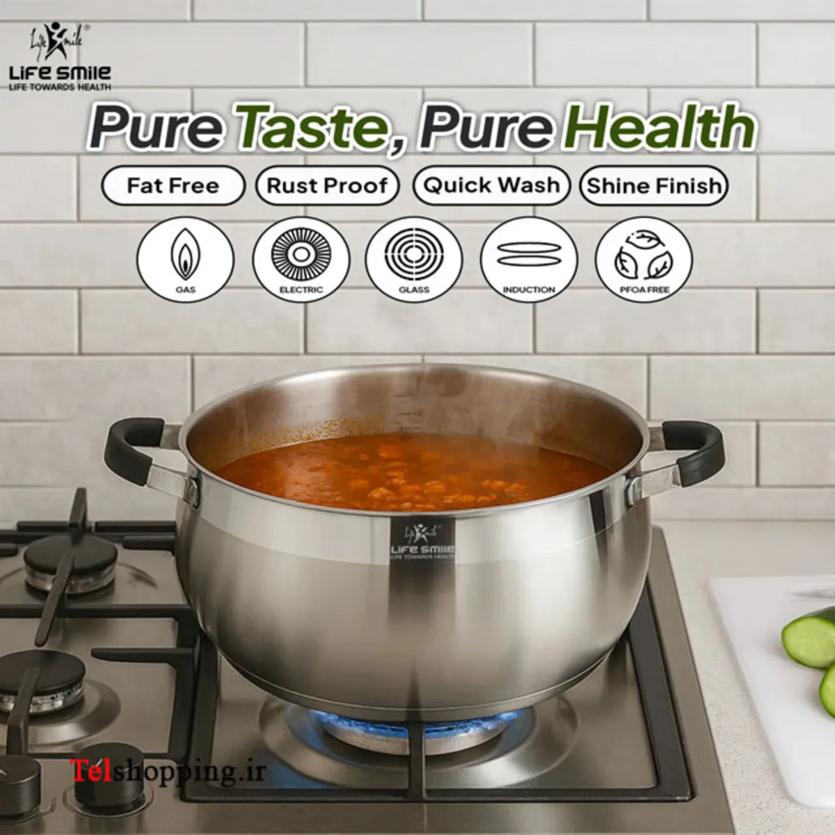 - سازگار با انواع اجاق گاز: چه با اجاق گازی، برقی، شیشهای یا القایی آشپزی کنید، سرویس قابلمه لایف اسمایل برای کار با هر منبع حرارتی طراحی شده است. پایه همه کاره آن توزیع بهینه گرما را در تمام سطوح پخت و پز تضمین میکند و آن را برای هر نوع چیدمان آشپزخانهای ایدهآل میسازد.