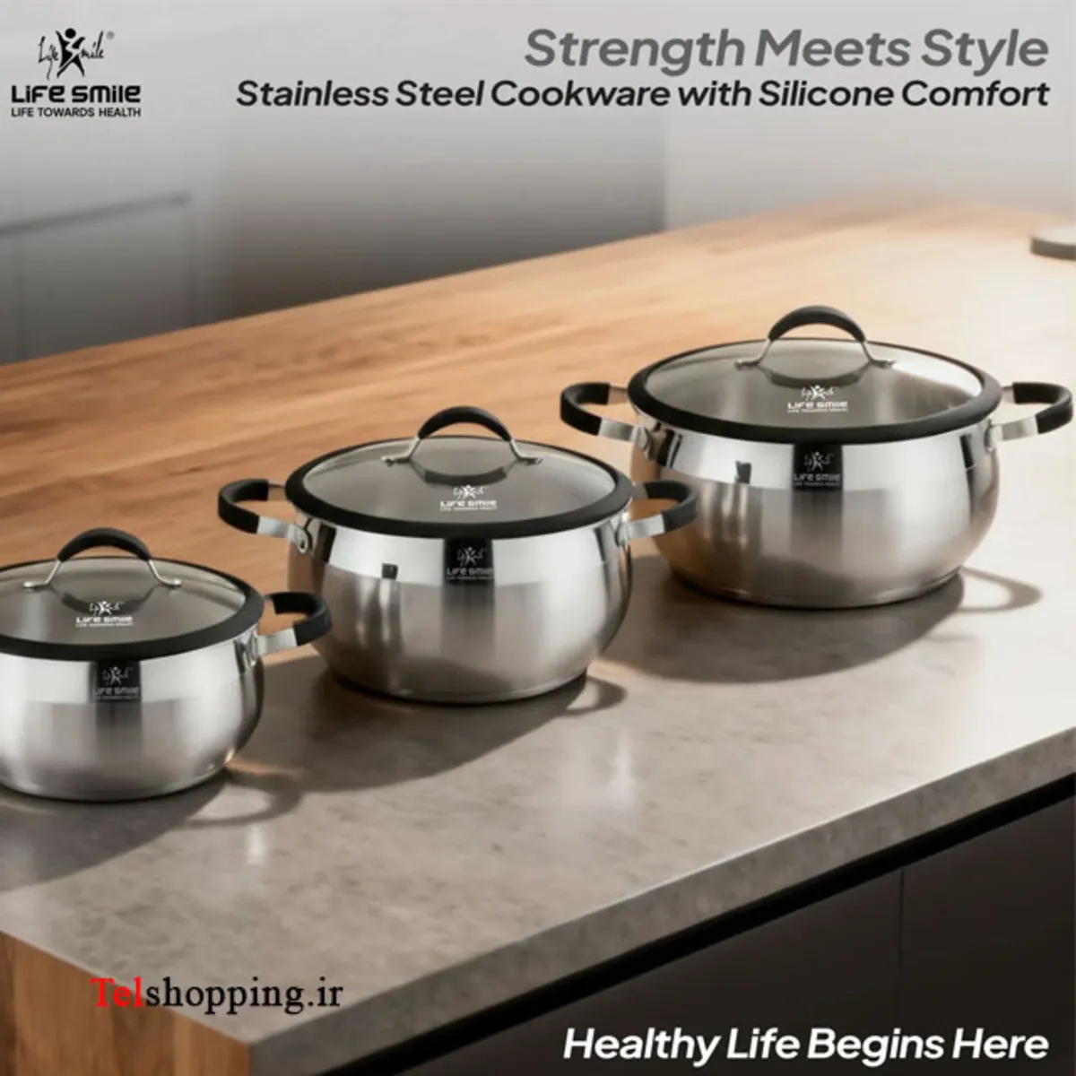 - ساختار بدنه ضخیم و مقاوم:این سرویس قابلمه که از جنس استیل ضد زنگ مرغوب 18/10 ساخته شده است، دارای بدنه ضخیم و مقاوم در برابر ضربه است که برای عملکرد طولانی مدت طراحی شده است. ساختار عالی آن، توزیع یکنواخت گرما را تضمین میکند، نقاط داغ را از بین میبرد و به شما امکان میدهد با دقت آشپزی کنید. چه در حال جوشاندن، سرخ کردن یا کباب کردن باشید، قابلمههای لایف اسمایل نتایجی با کیفیت رستورانی و ثابت ارائه میدهند.
