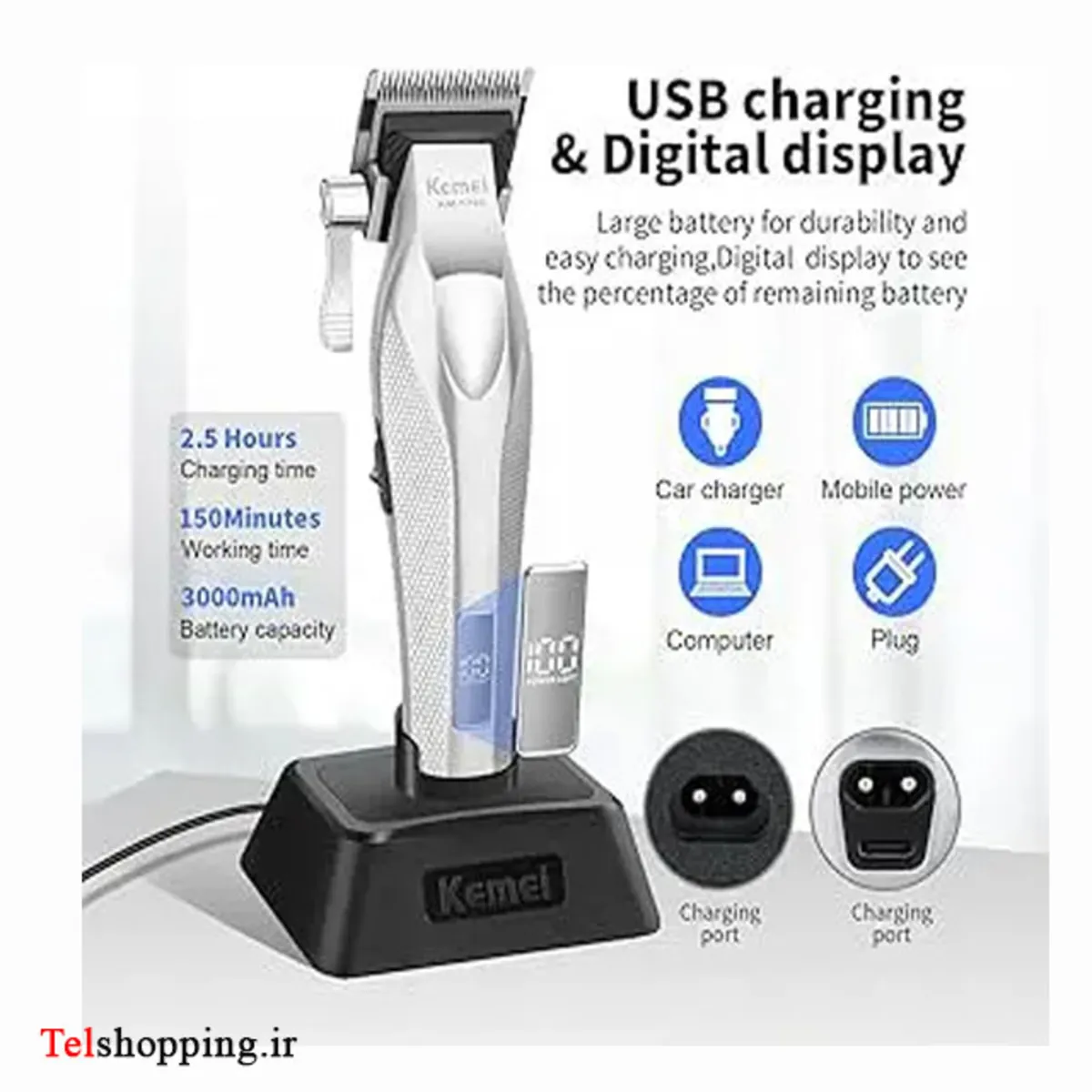 - زمان کاردهی طولانی: با تنها 2 تا 3 ساعت شارژ کامل، دستگاه تا 150 دقیقه کارکرد مداوم را تضمین میکند. این زمان برای انجام چندین اصلاح حرفهای پیوسته در سالنهای شلوغ یا استفادههای خانگی طولانی مدت، کاملاً کافی است.