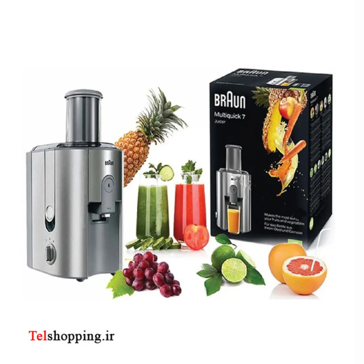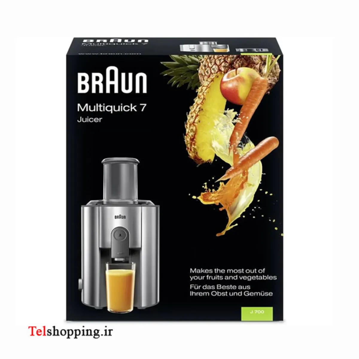 - ابمیوه گیری فوق العاده و حرفه ای براون با رنگ بدنه نقره ای و قدرت 1000 وات واقعی که قابلیت میکس انواع میوه های سخت با سبزیجات را دارد.