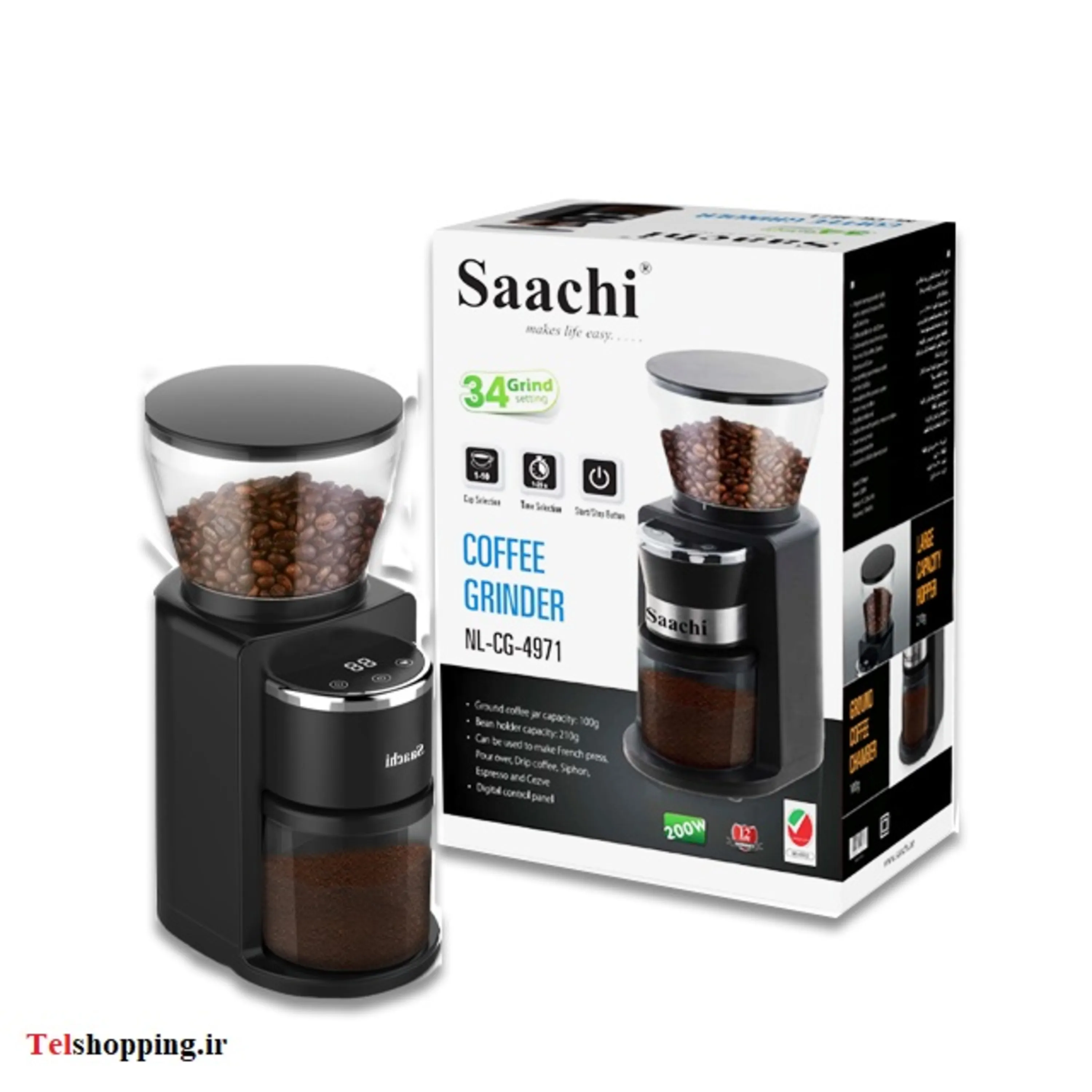 - ظرفیت قهوه خرد شده: 100 گرم