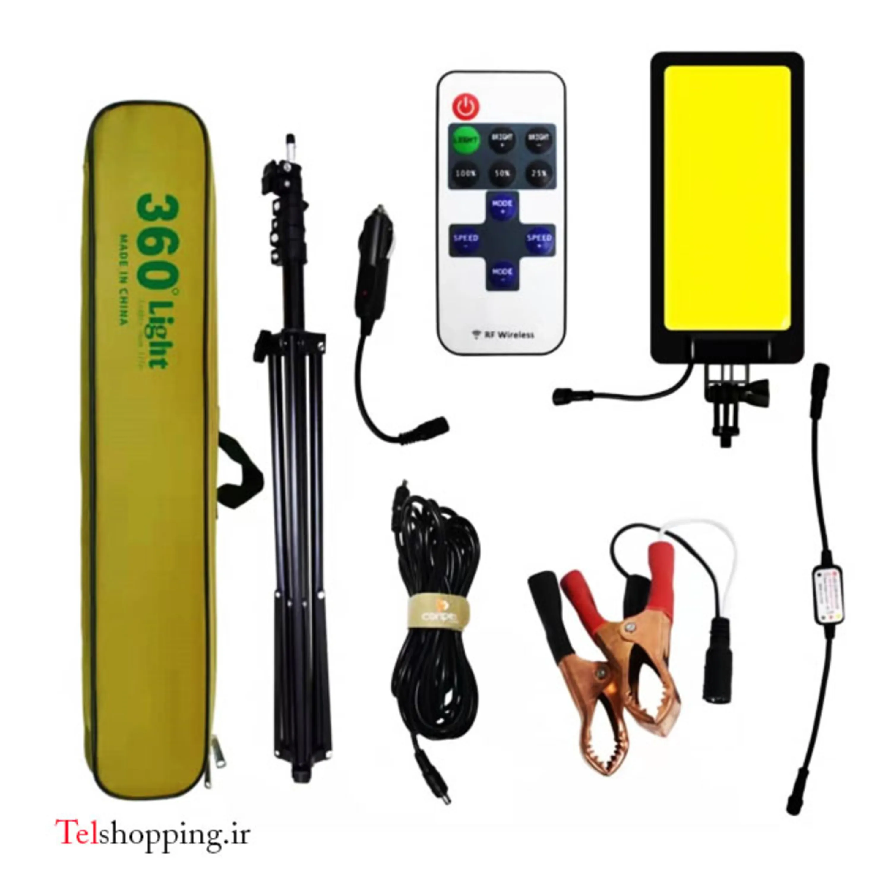 - اقلام همراه :پنل لامپ ،ریموت کنترل از راه دور ،کیف مخصوص حمل،گیره باتری،کابل 5 متری،سه پایه 2.7 متری