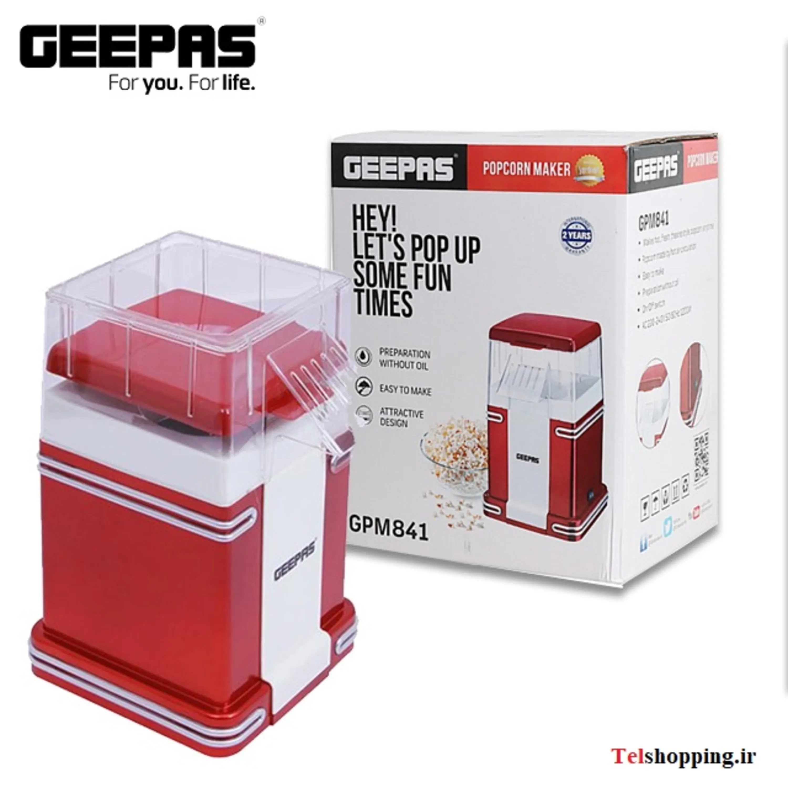 - تولید پاپ کورن با باد گرم و جداره داغ داخل محفظه بدون نیاز به روغن