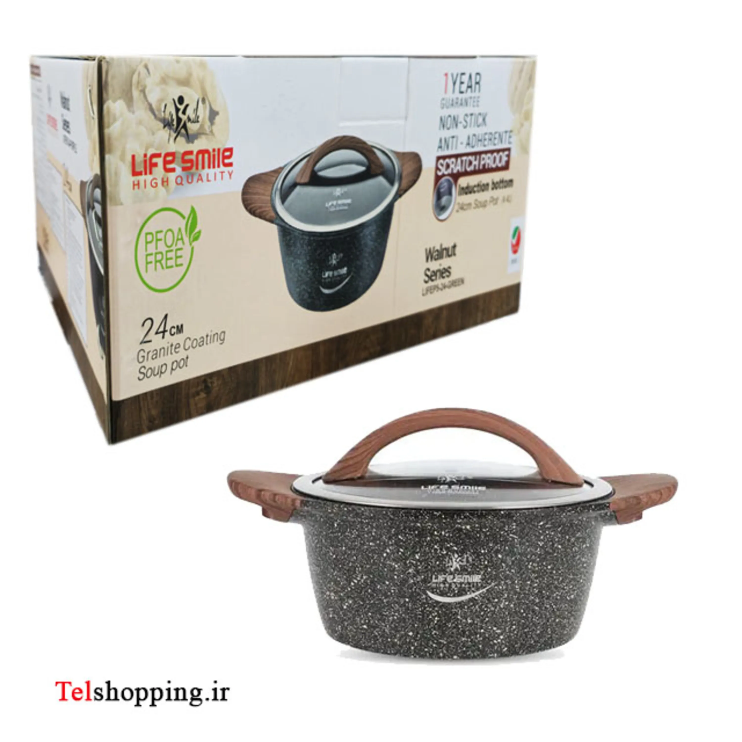 - ظروف نچسب ممتاز با پوشش گرانیتی ضد خش، دسته چوبی شیک و سازگاری القایی برای پخت و پز بی دردسر.