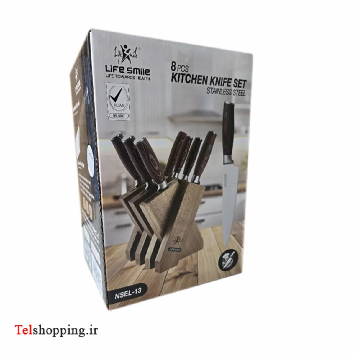 - ست چاقوی پخت و پز شامل: چاقو برش، چاقوی آشپز، چاقوی سانتوکو، چاقو تیزکننده، چاقوی برش دهنده، چاقوی کاربردی، چاقوی جداکننده و پایه چاقو
