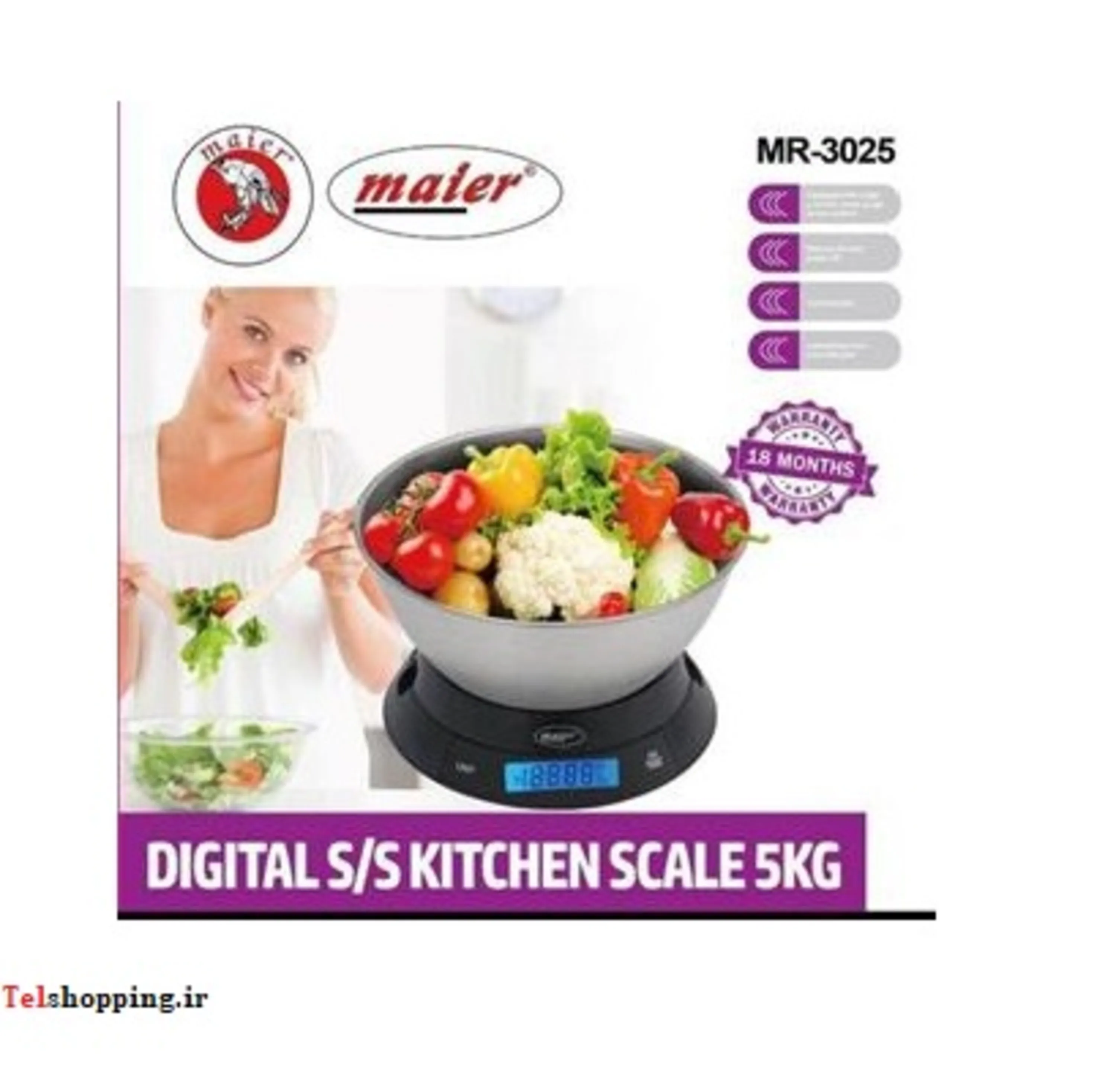 ترازو آشپزخانه مایر مدل Maier MR-3025 محصولی بسیار بادوام ودقیق برای شماست که در آشپزخانهتان مشغول هنرنمایی و پخت غذاها و شیرینیهای خوشمزه هستید. این محصول زیبا و خوش ساخت با دقت عمل فوق العاده که کار سنجش وزن انواع متریال را به بهترین شکل و با نهایت دقت انجام میدهد. این دستگاه در صورت عدم استفاده خودکار خاموش میشود و در صورت نزدیک شدن به پایان ظرفیت باتری، به شما هشدار تعویض باتری را میدهد. با داشتن ای محصول، همیشه رقم از دقیق وزن خودتان مطلع باشید. آستانه تحمل وزن این ترازو 5 کیلوگرم است.