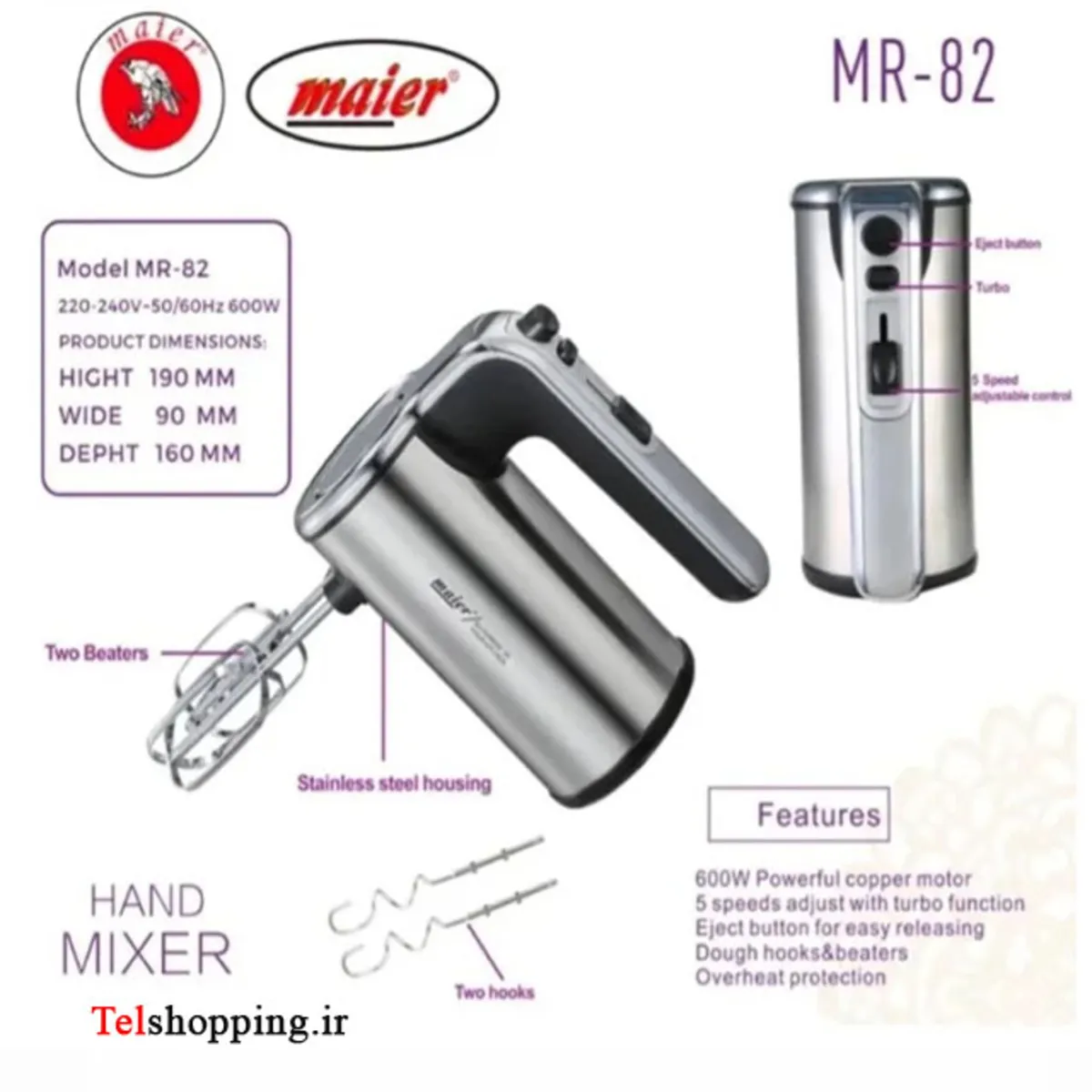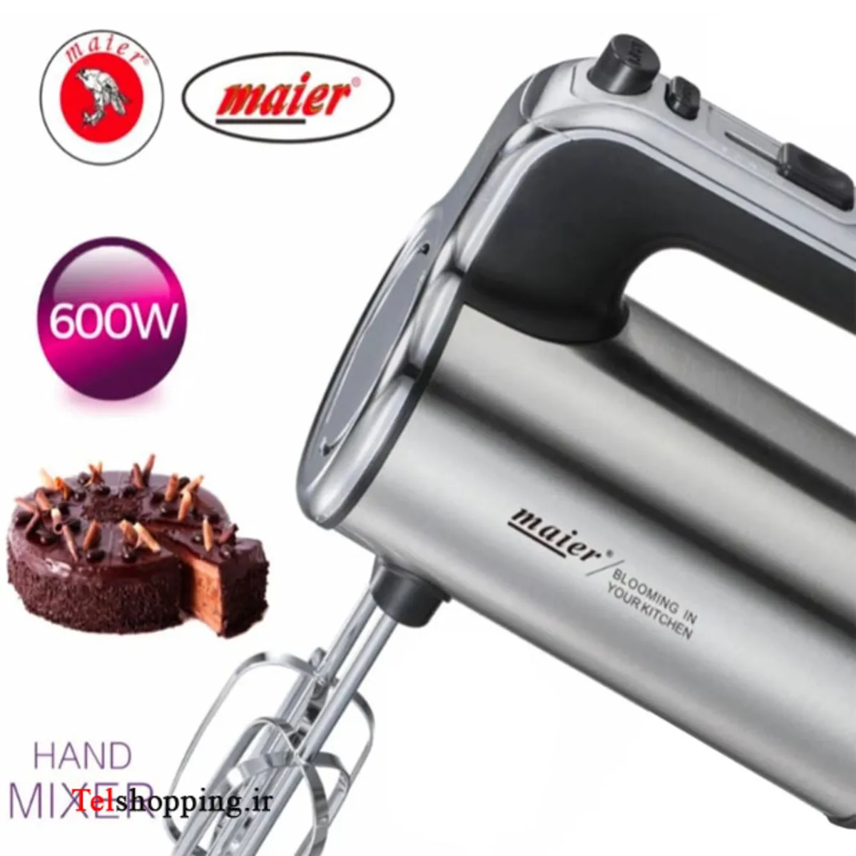 - توان موتور:600 وات – قدرت کافی برای همزدن خامه، سفیده تخممرغ و خمیرهای نیمهسفت