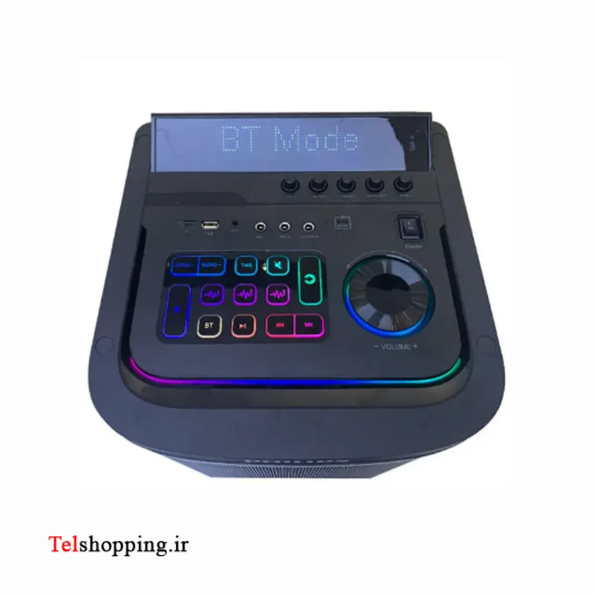 - وجود نورپردازی لیزری RGB جلوهای جذاب و هیجانانگیز ایجاد کرده و فضای جشن، تولد و دورهمی را زنده میکند. این اسپیکر به میکروفون بیسیم مجهز است و گزینهای عالی برای کارائوکه، اجرای زنده و مدیریت مراسم محسوب میشود.