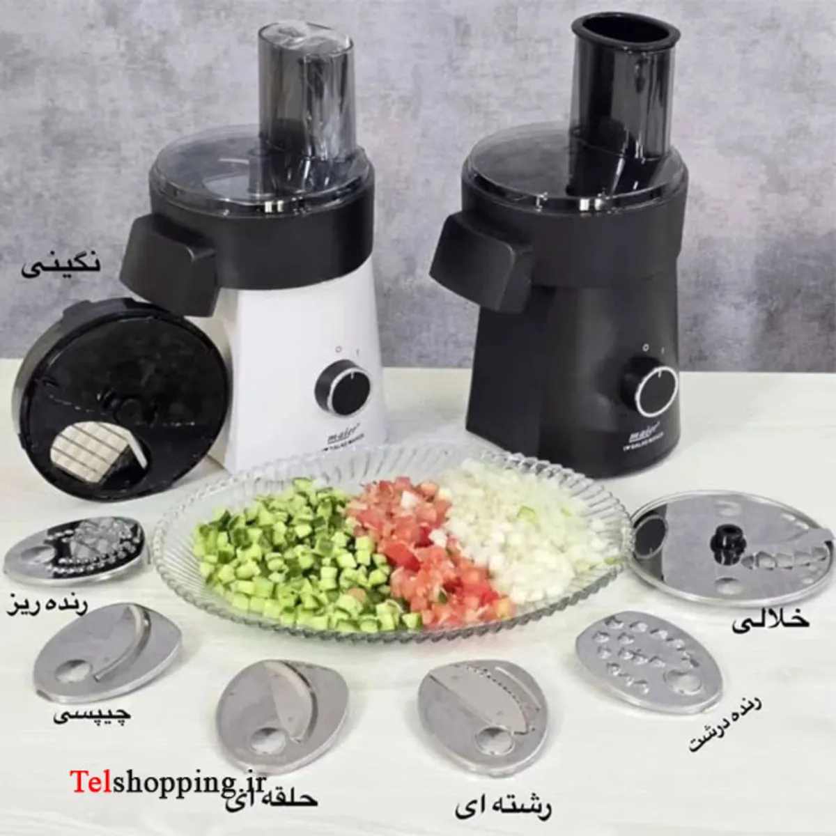 - :دارای 5 رنده استیل ضد زنگ برای ورقه کردن ،رنده کردن و خلال کردن سبزیجات و یک عدد دیسک خلال سیب زمینی و یک دیسک برای نگینی کردن