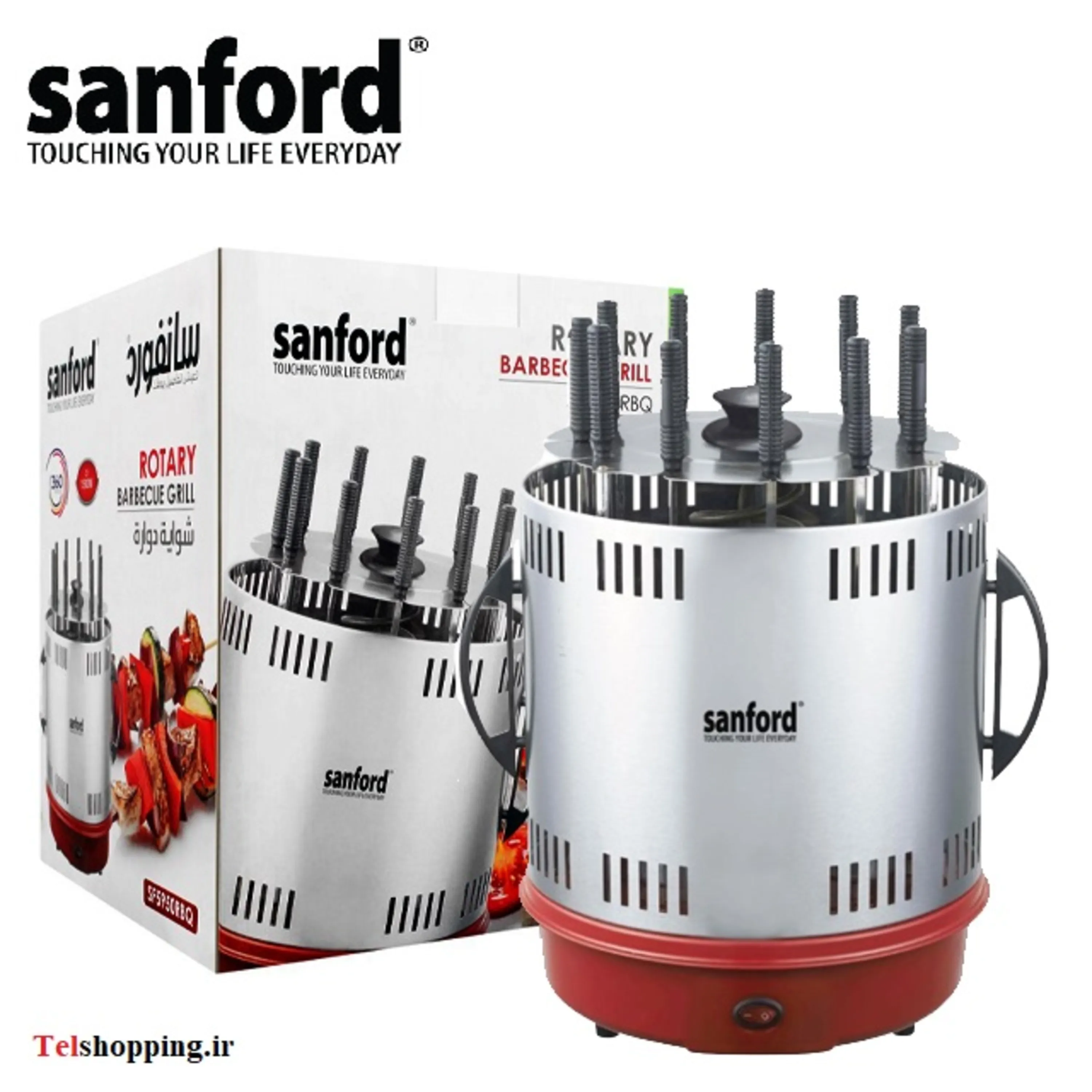 کباب پز برقی سانفورد مدل SF5950RBQ یکی از با کیفیت ترین و جدیدترین محصولات شرکت سانفورد می باشد.شرکت سانفورد تولید کننده لوازم خانگی تحت لیسانس ژاپن می باشد که به کلیه کشورهای آسیایی و اروپایی لوازم خانگی با تنوع بسیار بالا صادر می کند.این کباب پز دارای بدنه استیل بسیار باکیفیت می باشد.روش کار به این صورت می باشد که 11 سیخ مقاوم و باکیفیت خوب بصورت عمودی داخل محفضه های خود قرار گرفته و بصورت 360 درجه بصورت اتوماتیک بروی صفحه دایره ای شکل به چرخش در می آید و حرارت را از مرکز این دستگاه که المنت حرارتی بصورت عمودی و فنری شکل می باشد به غذای قرار گرفته داخل سیخ ها انتقال می دهد.این دستگاه دارای دو دسته پلاستیکی قایق حرارتی می باشند .توان این دستگاه 1500 وات می باشد و دارای موتور قوی و گیربکس فلزی بسیار بامقاوم می باشد بنابراین دارای دمای بسیار بالا جهت رست کردن سریع می باشد. همچنین قطعات این کباب پز برقی جهت شست و شو و تمیز کردن براحتی مونتاژ و دمونتاژ می شوند که تمام نگرانی های شمارا در داشتن یک کباب پز برقی کامل از بین می برد.