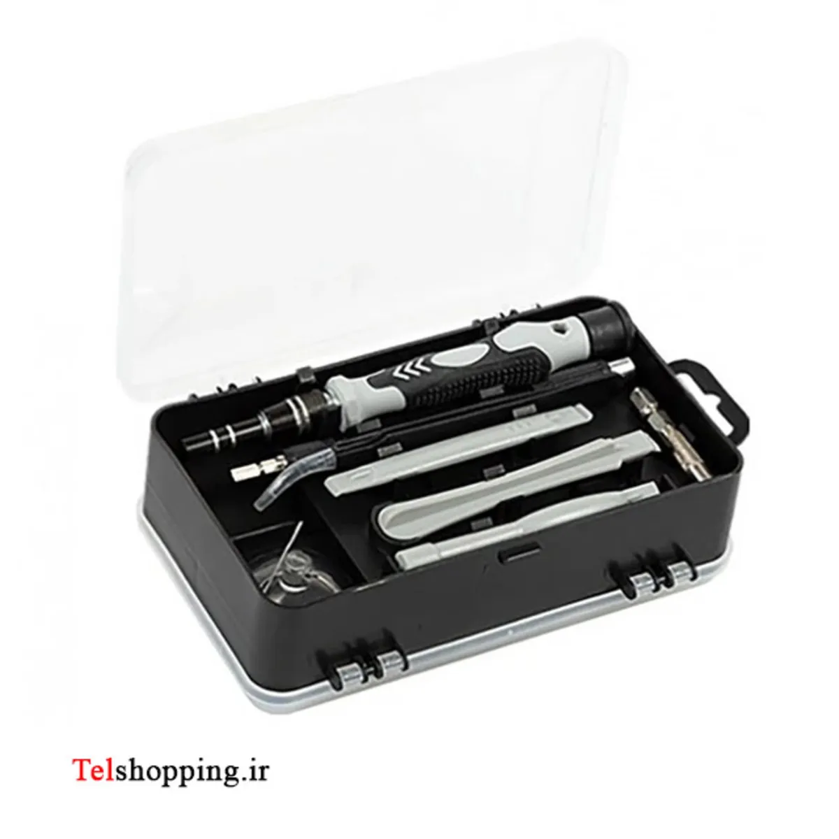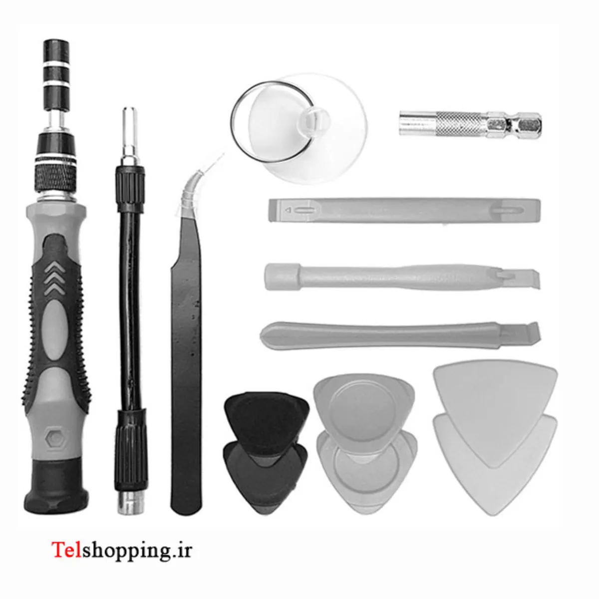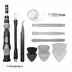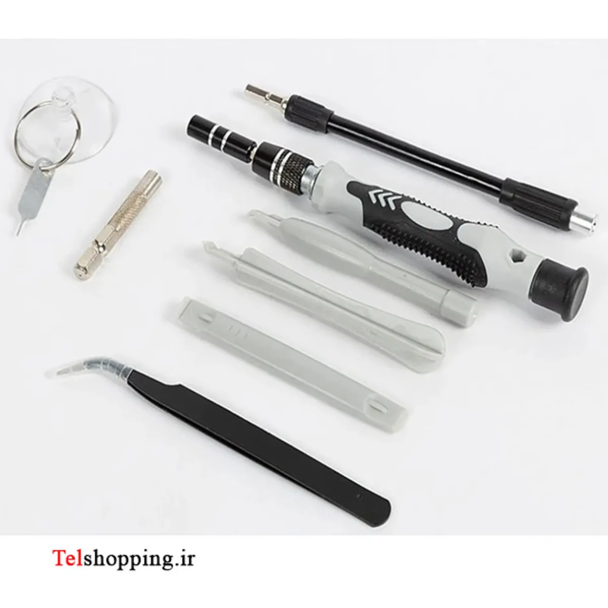 - دارای 98 سری مختلف دارای 17 ابزار: 1x handle 1x Flexible extension shaft 1x Extension bar 1x Tweezers 6x Plastic pry tools 1x SIM card removal tool 1x Magnetizer / Demagnetizer 1x suction cup 3x opening picks 1x Bit holder for power screwdriver