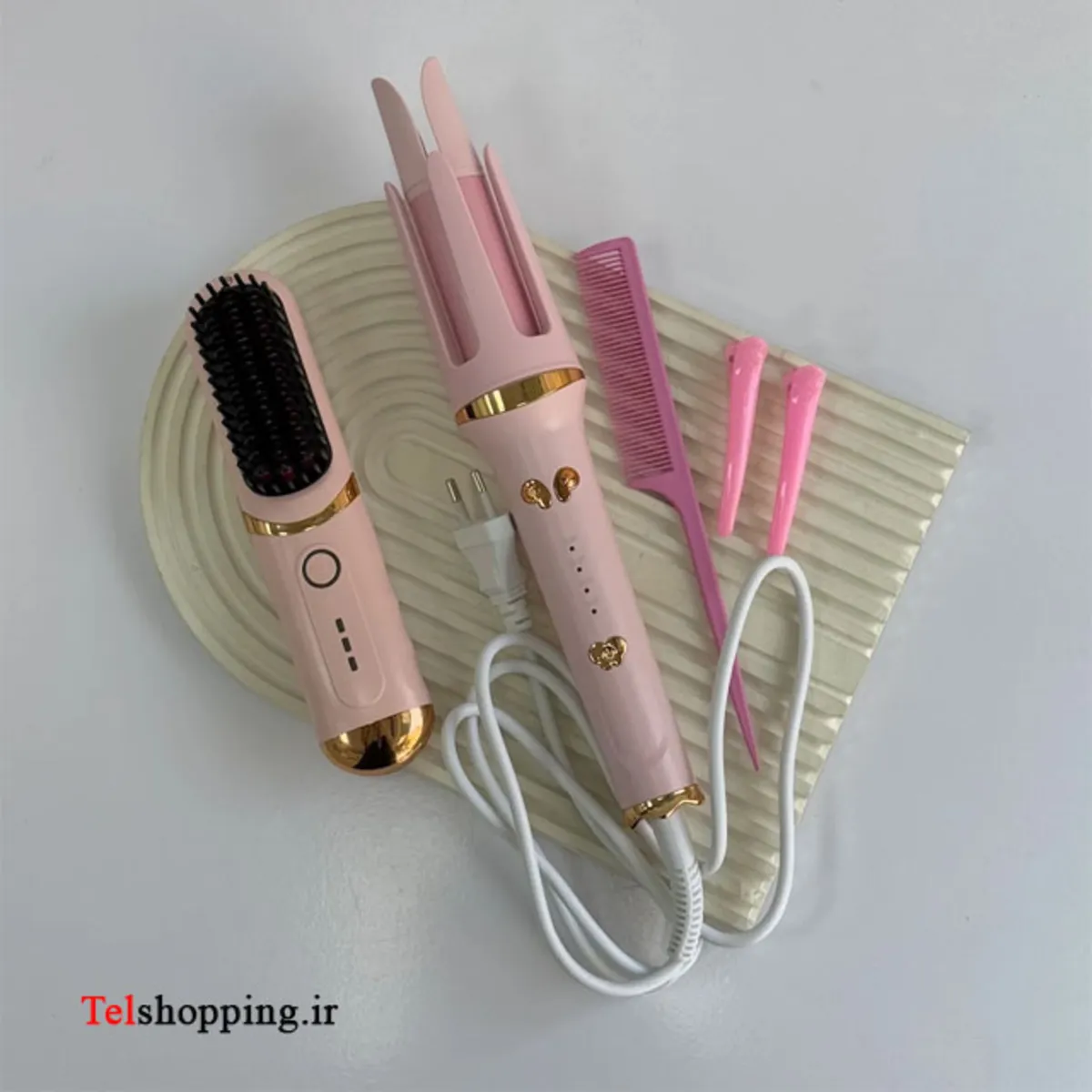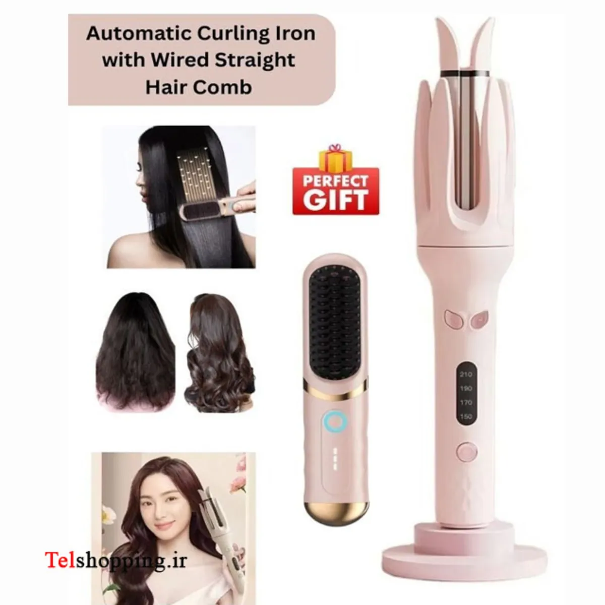 - فر کننده مو خودکار 2 در 1 با شانه صاف موی با سیم