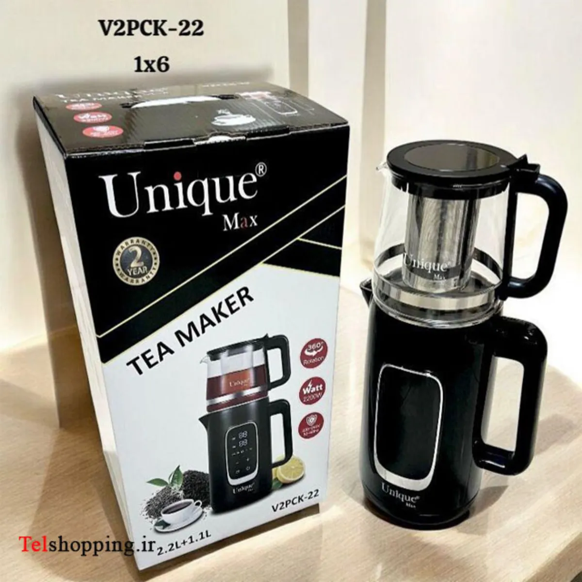 - چایساز یونیک مدل 22 ترکیبی از طراحی زیبا و کارایی بالا برای دمآوری یک چای خوشعطر و باکیفیت است. این محصول با توان حرارتی مناسب، آب را در مدت کوتاهی به جوش میآورد و با قوری مخصوص، دمکردن چای را به بهترین شکل ممکن انجام میدهد.