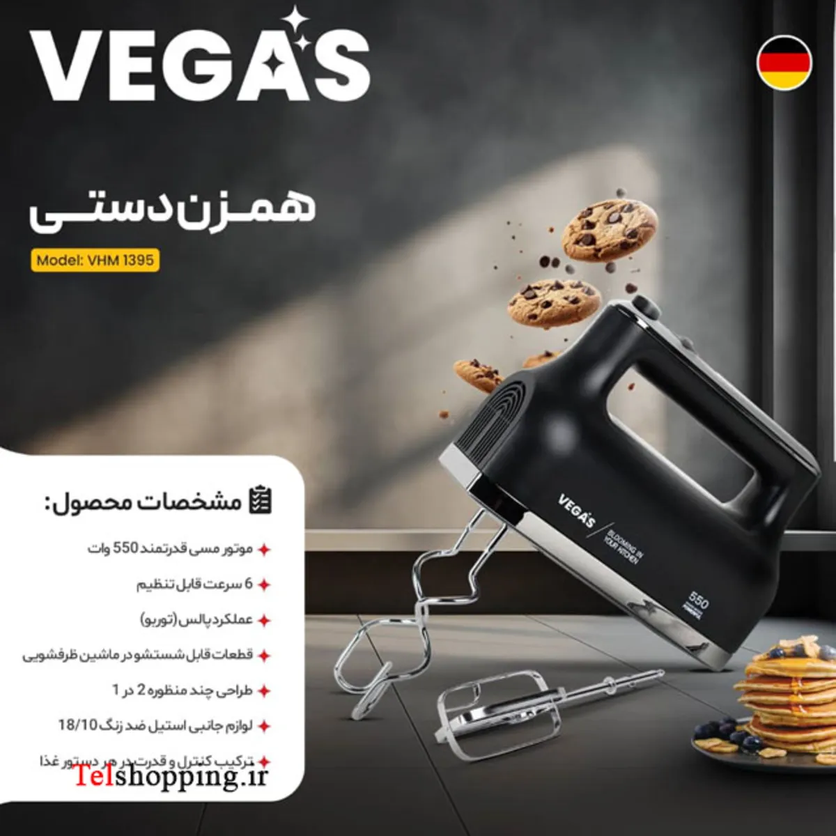 - موتور مسی 550 وات:قدرت بالا برای مخلوط کردن و ورز دادن سنگین