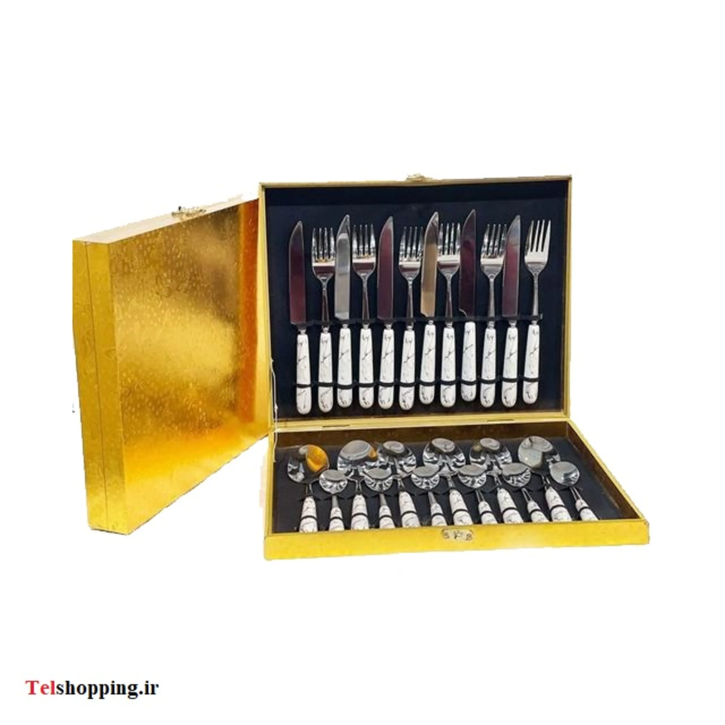 سرویس 24 پارچ قاشق چنگال چاقو دسته سرامیکی ماربل.